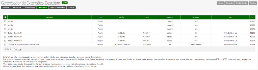 Sempre qu eentro no menu descobrir tem la os seguintes itens: