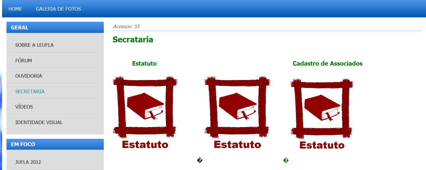 <p style="text-align: center;"><span style="font-size: large; color: #008000;"><strong>Secrataria<br /><br /><br /></strong></span><span style="font-size: large; color: #008000;"><strong><span style="font-size: small;"><span style="color: #008000;"> Estatuto Cadastro de Associados</span><br /><br /><span style="color: #000000;"><img src="imagens+leufla/estatuto%20leufla.jpg" border="0" width="147" height="197" /> <img src="imagens+leufla/estatuto%20leufla.jpg" border="0" width="150" height="197" /></span><br /></span></strong></span></p>